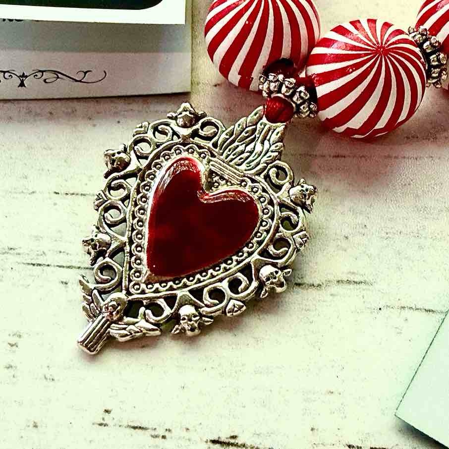 • Detente metal color plateado fantasía con esmaltado en rojo