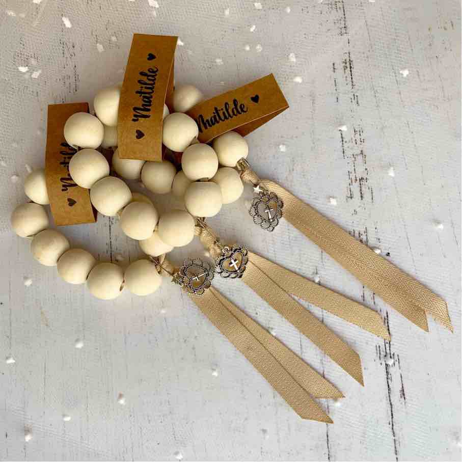 - IDenario con cuentas de madera natural de 2 cm de diámetro aprox. ( 10 cuentas )